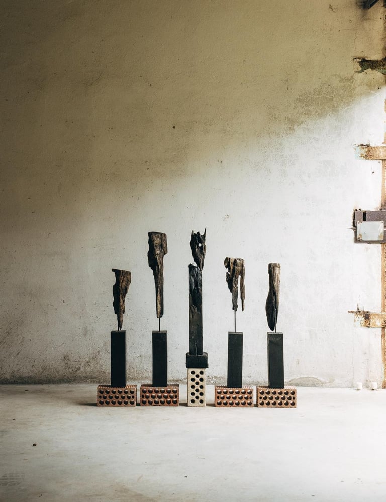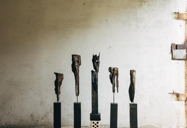 Mis esculturas son arquitecturas del espíritu: estructuras rústicas, brutales y abstractas que materializan el tiempo, transformando el vacío en presencia.